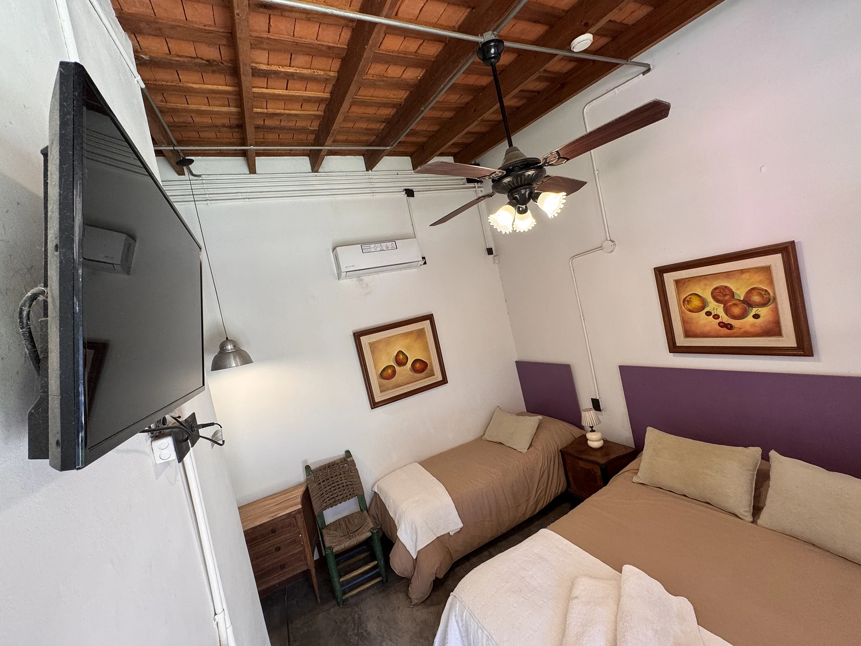 Disponemos de 7 habitaciones dobles, triples y una cuádruple, todas con baño privado, sommier, frigobar, TV con cable, ropa de cama, toallas, amenities y climatización frío-calor. Algunas conservan detalles originales restaurados, como pisos de madera, mosaicos calcáreos y tinas antiguas renovadas.