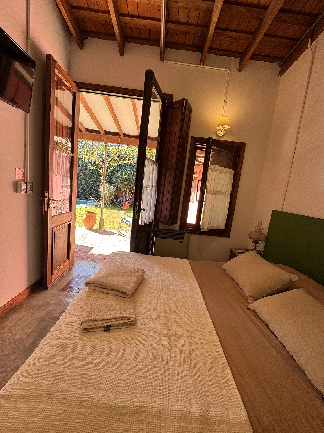 Todas las habitaciones tienen acceso a galería y parque, con mesa propia. Incluyen desayuno, WiFi, pava eléctrica en galería, piscina de estación, parrilla de cortesía y servicio de restaurante a la carta y vinoteca. Consultá por opción de media pensión.